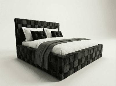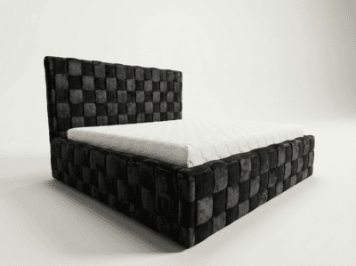 • Konstrukcja: Metalowa rama łóżka z siłownikami gazowymi zapewnia stabilność i długotrwałe wsparcie. Elastyczne listwy pod materacem gwarantują odpowiednią wentylację i komfort snu. Do wyboru rama łóżka z 34 lub 48 listwami. Łóżko posiada pojemnik na pościel, wykończony czarnym wigofilem, który zapewnia dodatkowe miejsce do przechowywania. Podłoga pojemnika na pościel składa się z  czterech elementów wykonanych z płyty wiórowej 12 mm, obitej czarnym wigofilem. Konstrukcja łóżka wraz z podłogą opiera się na trójkątnych ślizgach o wysokości 15 mm, co zapewnia cyrkulację powietrza pod łóżkiem. Szkielet wykonany z płyty wiórowej o grubości 16 mm, wzmocniony elementami drewnianymi. Całość pokryta tkaninowymi pasami wypełnionymi pianką T25. Łóżko sypialniane dostępne w rozmiarach 120×200 cm, 140×200 cm, 160×200 cm, 180×200 cm, 200×200 cm.