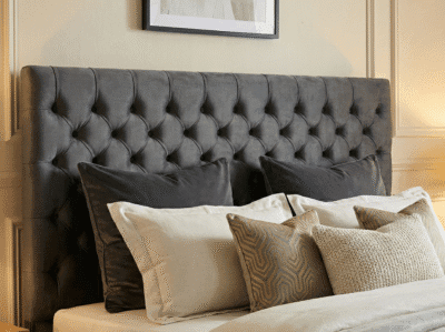 Łóżko kontynentalne z elegancko pikowanym zagłowiem przyciąga wzrok i wprowadza do wnętrza nutę stylu glamour, nie tracąc przy tym klasycznej elegancji. Ponadczasowy wzór sprawia, że łóżko doskonale wpisuje się zarówno w nowoczesne, jak i bardziej tradycyjne aranżacje sypialni.