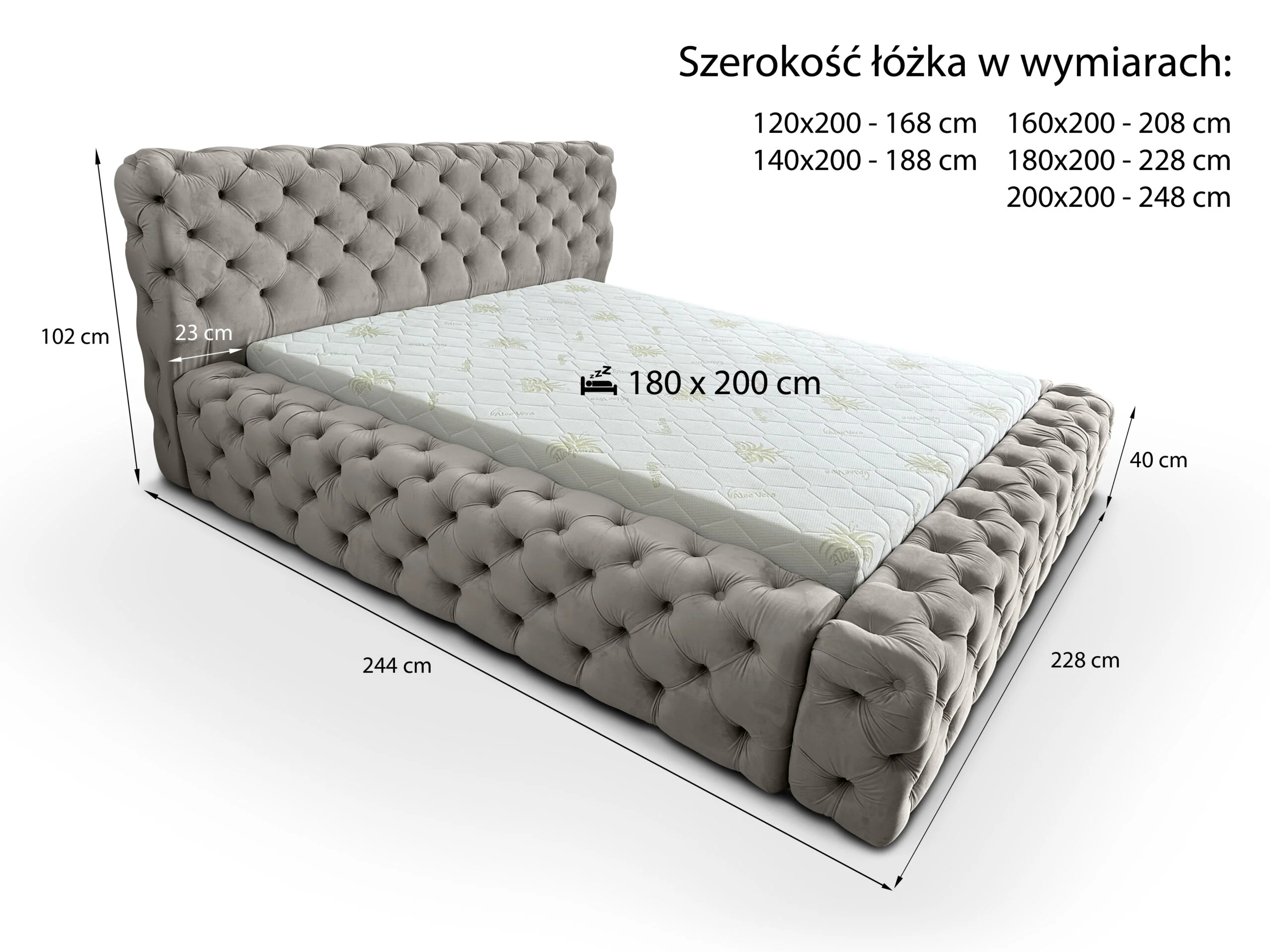 Wymiary łóżka Chesterfield Lux: