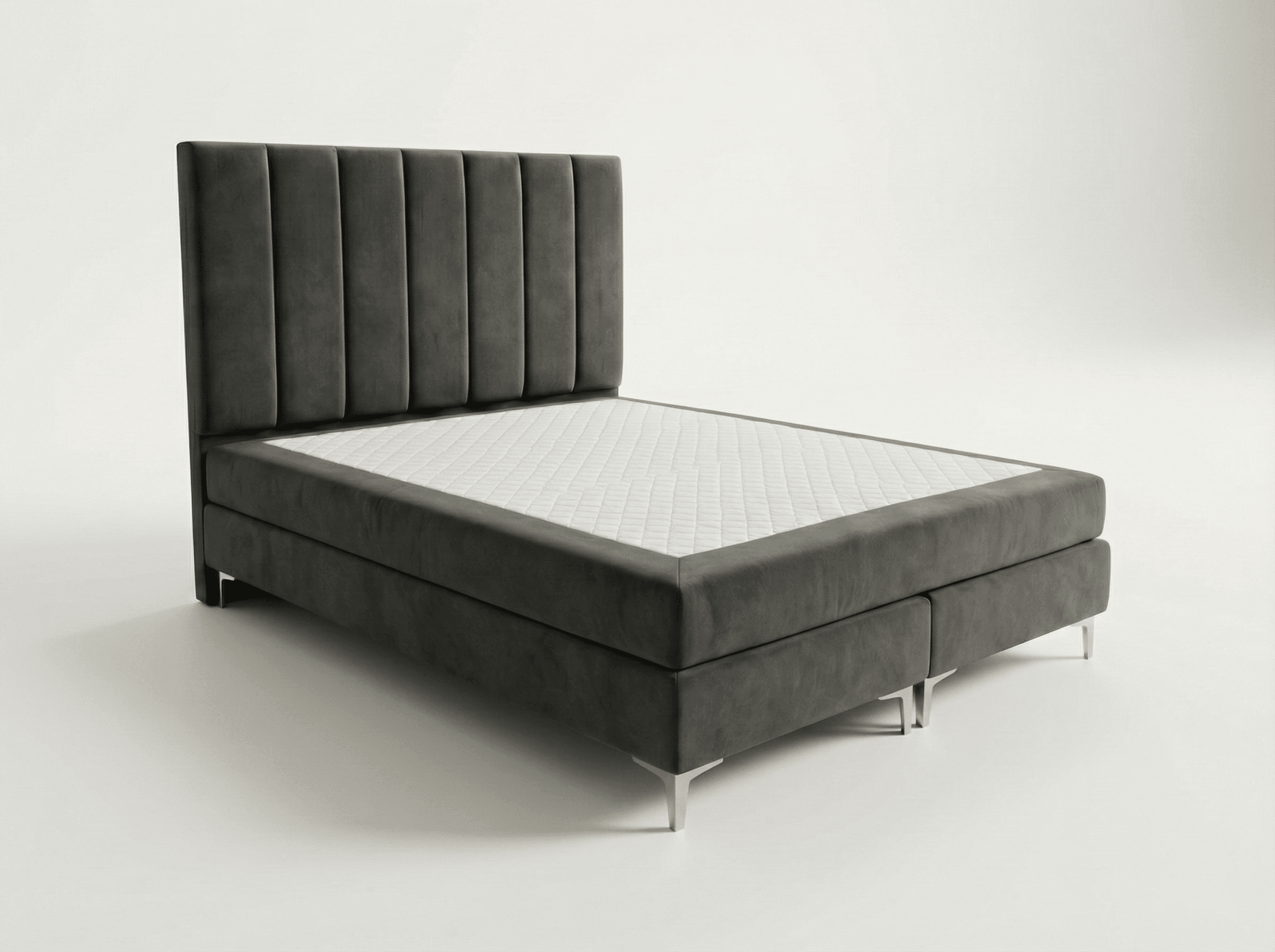 - Konstrukcja: Szkielet wykonany z płyty wiórowej o grubości 16mm, wzmocniony elementami drewnianymi. Łóżko nie posiada pojemnika na pościel. Całość pokryta pianką T25 i owatą. Podstawa łóżka zaszyta z góry tkaniną Anty Slip, zapobiegającą przesuwaniu się materaca nawierzchniowego. Materac nawierzchniowy o twardości H3, H4 lub H5 obszyty tkaniną w kolorze łóżka, powierzchnia spania wykończona pikowanym materiałem materacowym, spód wykończony tkaniną Anty Slip.