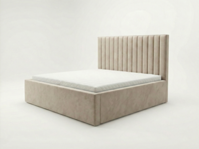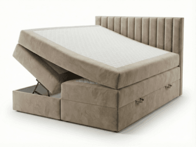 - Konstrukcja: Konstrukcja łóżka opiera się na trójkątnych ślizgach o wysokości 15 mm, co zapewnia cyrkulację powietrza pod łóżkiem. Szkielet wykonany z płyty wiórowej o grubości 16 mm, wzmocniony elementami drewnianymi. Całość pokryta pianką T25. Skrzynie na pościel wykonane z płyty wiórowej 16 mm, w białym laminacie. Łóżko posiada automaty z siłownikami gazowymi, które wspomagają otwieranie pojemników na pościel. Łóżko składa się z wbudowanego materaca bonellowego, który z góry zaszyty jest tkaniną Anty Slip, zapobiegającą przesuwaniu się materaca nawierzchniowego. Materac nawierzchniowy o twardości H3, H4 lub H5 obszyty tkaniną w kolorze łóżka, powierzchnia spania wykończona pikowanym materiałem materacowym, spód wykończony tkaniną Anty Slip. Łóżko tapicerowane dostępne w rozmiarach 120×200 cm, 140×200 cm, 160×200 cm, 180×200 cm, 200×200 cm.