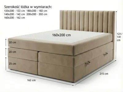 Tolerancja wymiarów +/- 2 cm. Wysokość wezgłowia taka sama dla każdego rozmiaru łóżka.