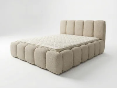 - Konstrukcja: Metalowa rama łóżka z siłownikami gazowymi zapewnia stabilność i długotrwałe wsparcie. Elastyczne listwy pod materacem gwarantują odpowiednią wentylację i komfort snu. Do wyboru rama łóżka z 34 lub 48 listwami. Łóżko posiada pojemnik na pościel, wykończony czarnym wigofilem, który zapewnia dodatkowe miejsce do przechowywania. Podłoga pojemnika na pościel składa się z czterech elementów wykonanych z płyty wiórowej 12mm, obitej czarnym wigofilem. Konstrukcja łóżka wraz z podłogą opiera się na trójkątnych ślizgach o wysokości 15mm, co zapewnia cyrkulację powietrza pod łóżkiem. Szkielet wykonany z płyty wiórowej o grubości 16mm, wzmocniony elementami drewnianymi. Całość pokryta pianką T25 i owatą.