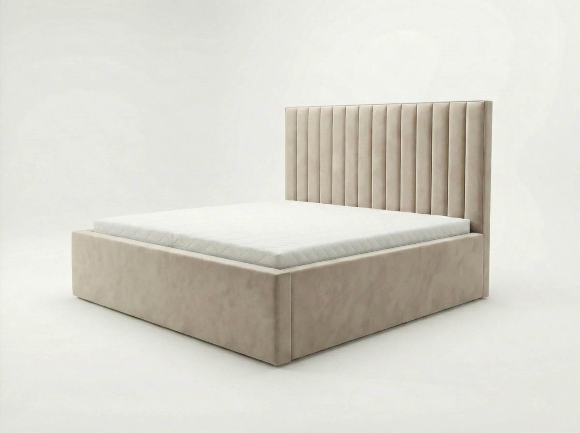 Elegancki design łóżka tapicerowanego Maya Lux podkreśli luksusowy charakter Twojej sypialni. Liczne pionowe panele na wezgłowiu nadają mu wyjątkowego wdzięku.