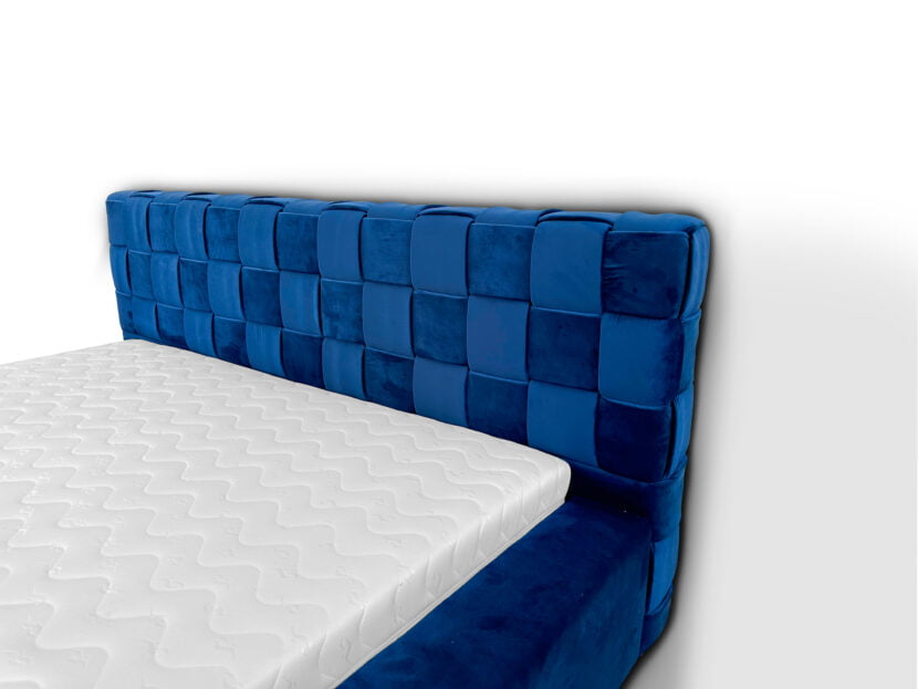 • Konstrukcja: Metalowa rama łóżka z siłownikami gazowymi zapewnia stabilność i długotrwałe wsparcie. Elastyczne listwy pod materacem gwarantują odpowiednią wentylację i komfort snu. Do wyboru rama łóżka z 34 lub 48 listwami. Łóżko posiada pojemnik na pościel, wykończony czarnym wigofilem, który zapewnia dodatkowe miejsce do przechowywania. Podłoga pojemnika na pościel składa się z  czterech elementów wykonanych z płyty wiórowej 12 mm, obitej czarnym wigofilem. Konstrukcja łóżka wraz z podłogą opiera się na trójkątnych ślizgach o wysokości 15 mm, co zapewnia cyrkulację powietrza pod łóżkiem. Szkielet wykonany z płyty wiórowej o grubości 16 mm, wzmocniony elementami drewnianymi. Całość pokryta pianką T25 i owatą. Łóżko sypialniane dostępne w rozmiarach 120×200 cm, 140×200 cm, 160×200 cm, 180×200 cm, 200×200 cm.