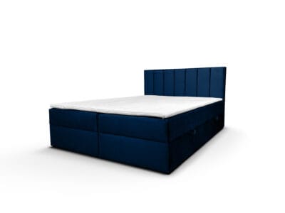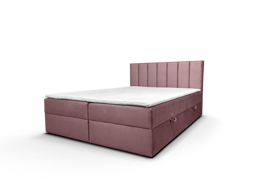 - Konstrukcja: Konstrukcja łóżka opiera się na trójkątnych ślizgach o wysokości 15 mm, co zapewnia cyrkulację powietrza pod łóżkiem. Szkielet wykonany z płyty wiórowej o grubości 16 mm, wzmocniony elementami drewnianymi. Całość pokryta pianką T25. Skrzynie na pościel wykonane z płyty wiórowej 16 mm, w białym laminacie. Łóżko posiada mocne automaty ze sprężynami, które wspomagają otwieranie pojemników na pościel. Łóżko składa się z wbudowanego materaca bonellowego lub pocketowego (do wyboru), który z góry zaszyty jest tkaniną Anty Slip, dzięki której topper nie przesuwa się. Łóżko tapicerowane dostępne w rozmiarach 140×200 cm, 160×200 cm, 180×200 cm. Zagłowie mocowane przy użyciu 4 śrub 8 mm, co zapewnia jego stabilność.