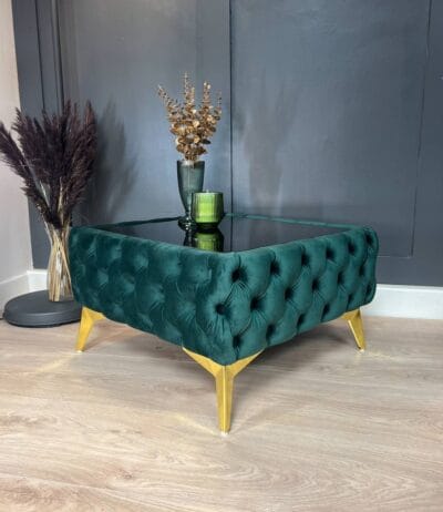Pikowany stolik kawowy Chesterfield stanowi idealne dopełnienie Twojego wnętrza. Nie tylko dodaje luksusu, ale także zapewnia wygodę i funkcjonalność. Idealny do salonu w stylu glamour, nowojorskim lub modern classic.