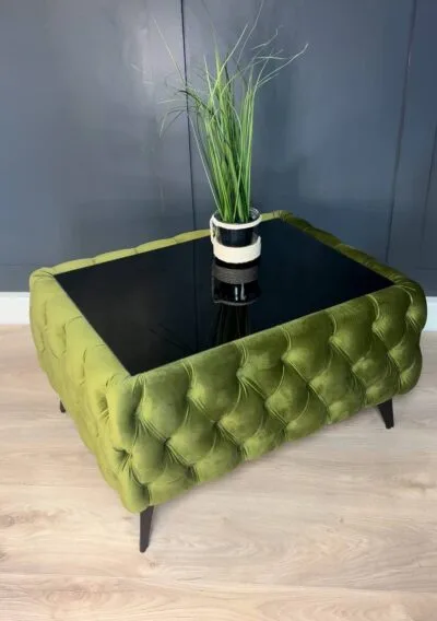 Pikowany stolik kawowy Chesterfield stanowi idealne dopełnienie Twojego wnętrza. Nie tylko dodaje luksusu, ale także zapewnia wygodę i funkcjonalność. Idealny do salonu w stylu glamour, nowojorskim lub modern classic.